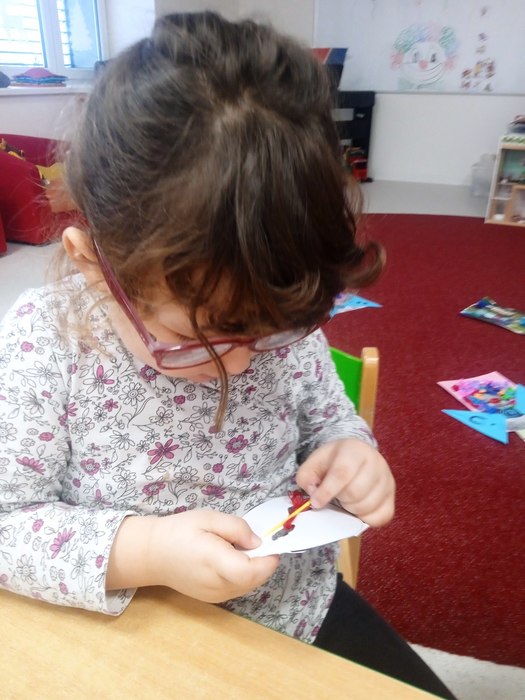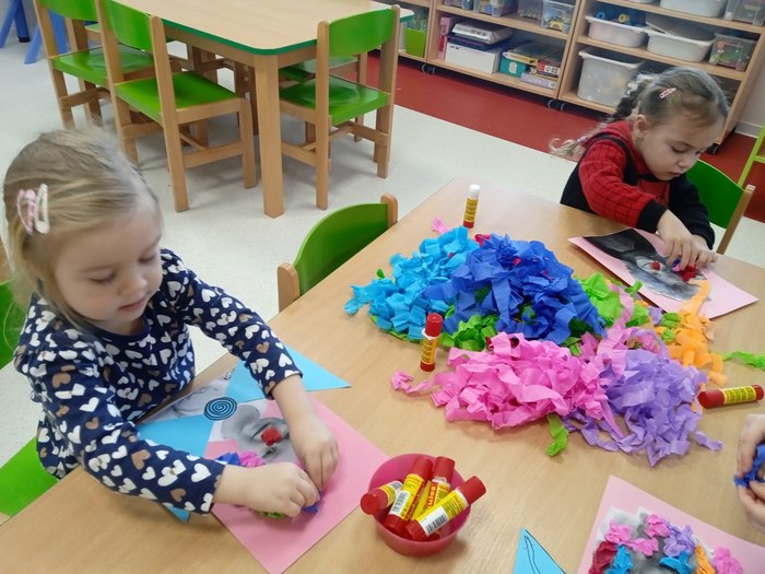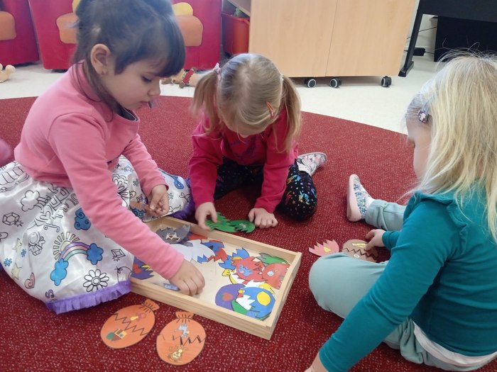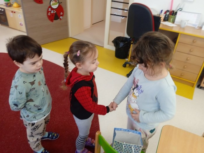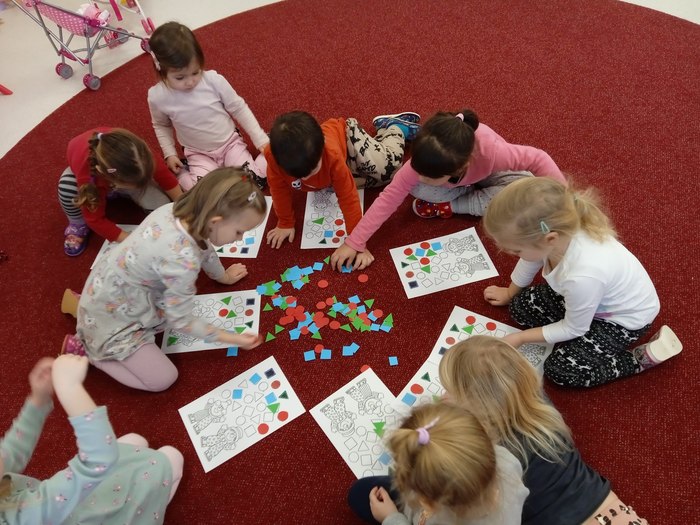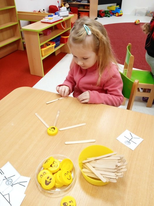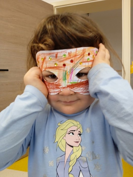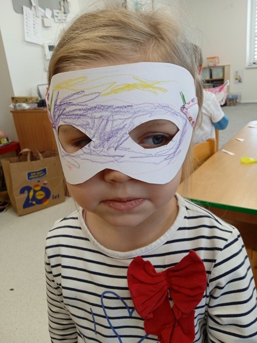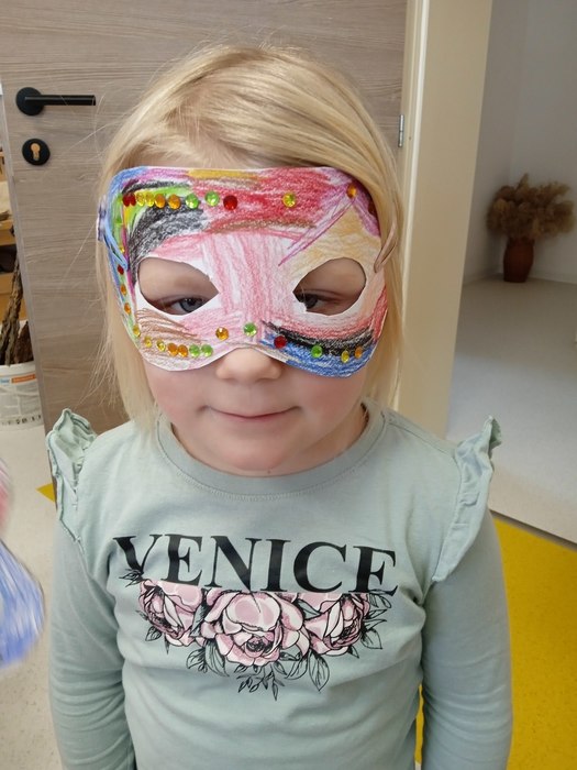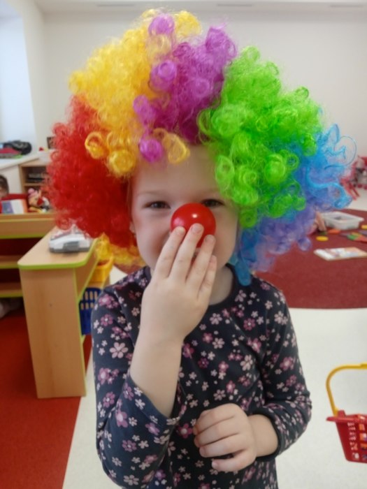 V prvním týdnu jsme si s dětmi povídali o zážitcích a emocích z vánočních prázdnin, z oslav Nového roku a seznámili jsme se s tradicí Tří králů. Navštívilo nás loutkové divadlo "Smíšek" s pohádkou "Tři zlaté vlasy děda Vševěda" a oslavili jsme narozeniny od Barunky a Emmy. V druhém týdnu jsme se připravovali na blížící se karneval. Povídali jsme si o tom, co na takovém karnevalu najdeme, co se tam dělá, za jakou masku půjdeme, koho tam můžeme potkat. Děti si poslechly pohádku "O klaunovi, který ztratil červený knoflík" a seznámily se tak s emocemi smutný x veselý. Rozvíjeli jsme dechové cvičení pomocí smíchu a gymnastiku mluvidel. Osvojovali jsme si znalosti v předmatematických představách (počty 1-6 a geometrické tvary). Projevovali jsme radost z poznaného a pomocí pohybových her, her s nafukovacími balónky, jsme se zdokonalovali v hrubé motorice. Konec tohoto týdenního bloku děti zakončily maškarním bálem v kulturním domě a mohli jsme se tak potkat s Elzou, šnekem, Popelkou, kovbojem, pirátkou, a spoustou dalších překrásných masek.