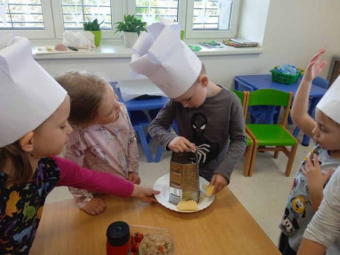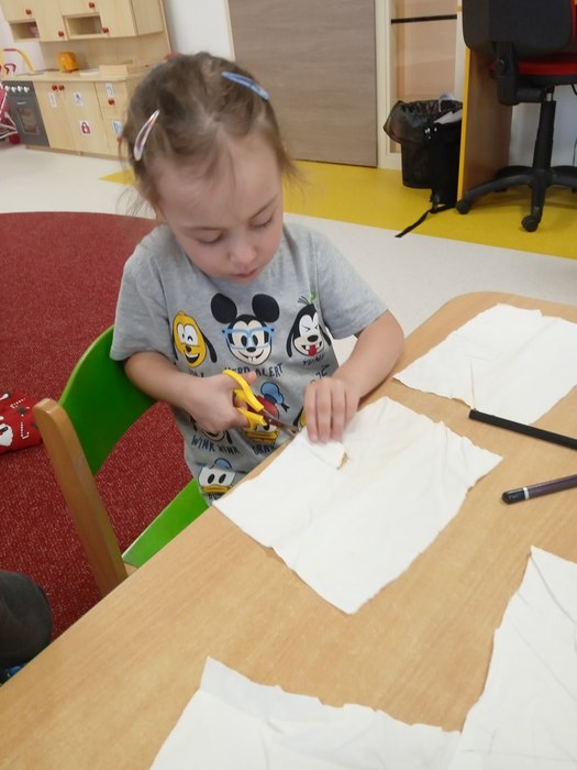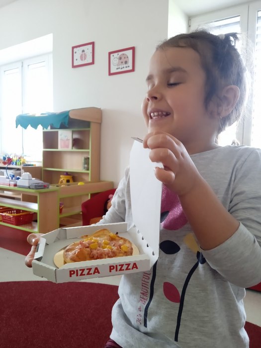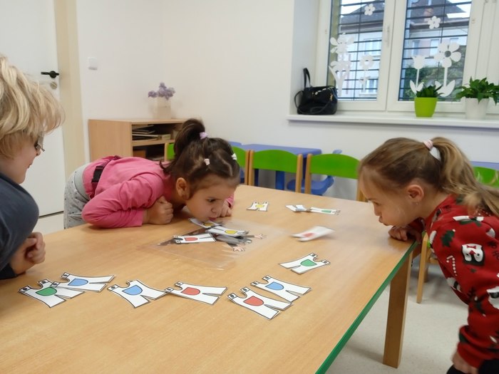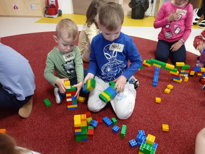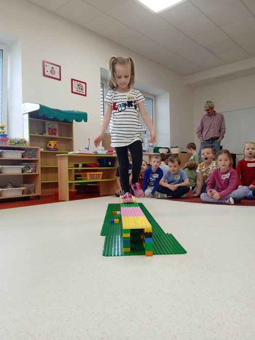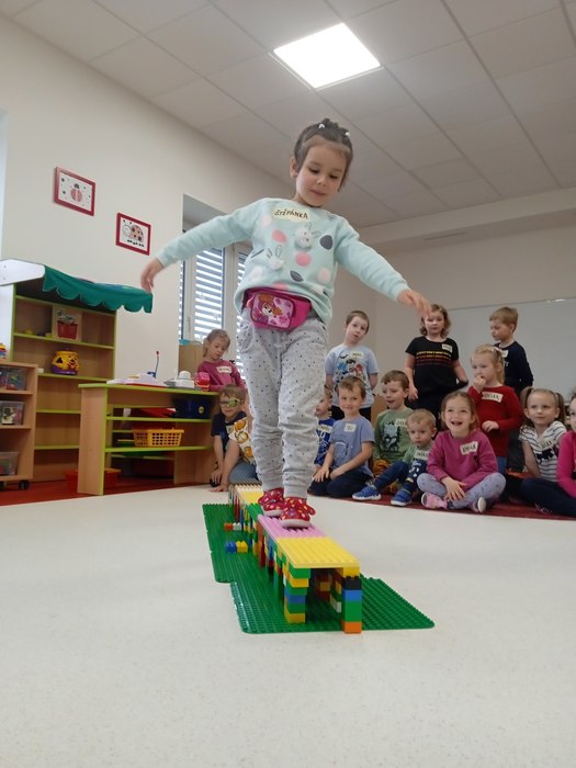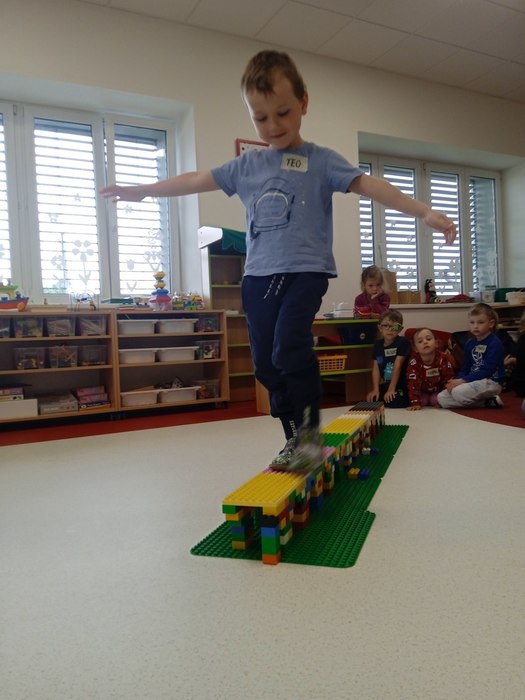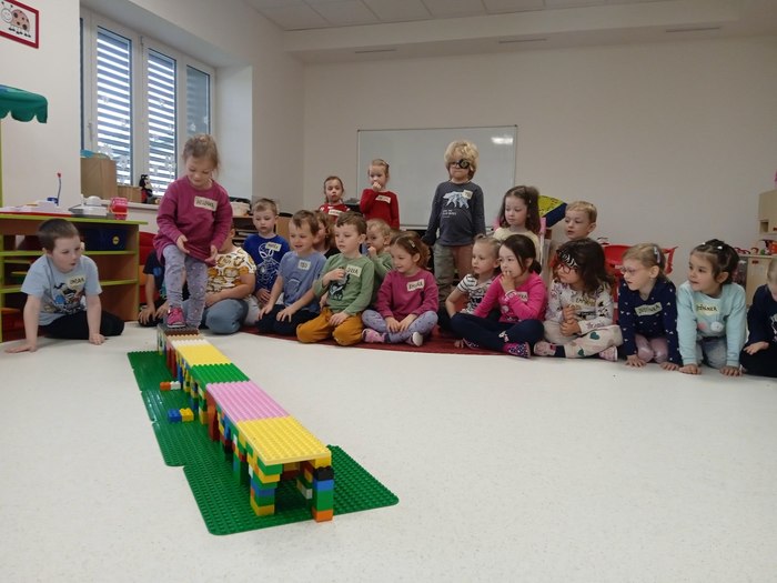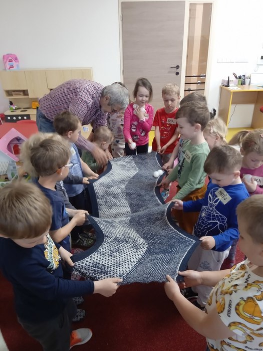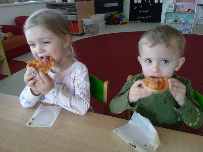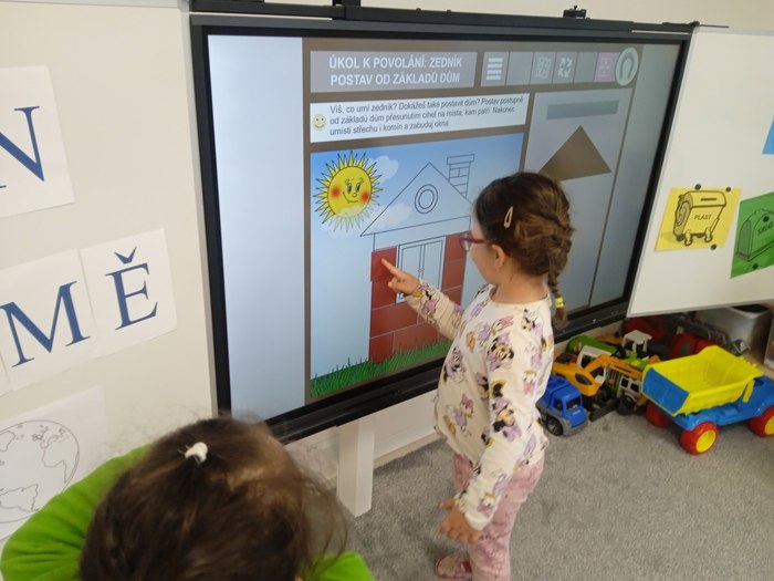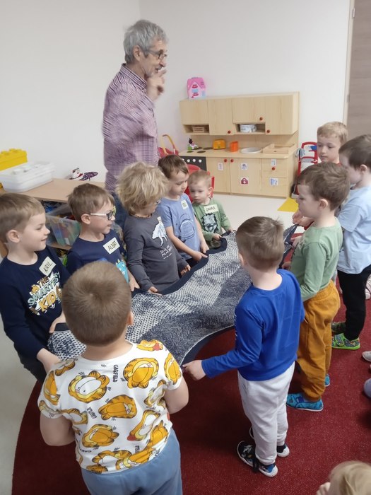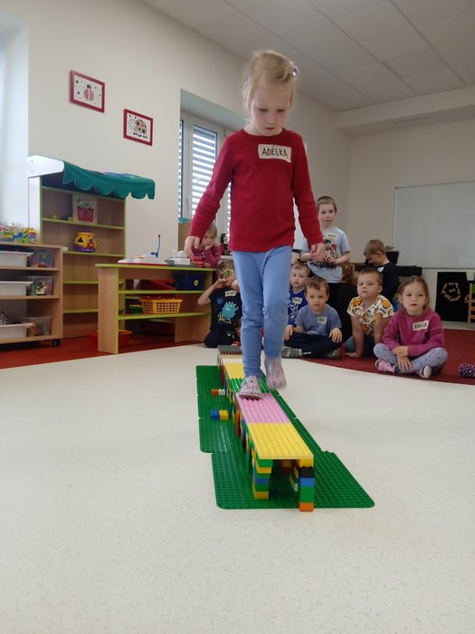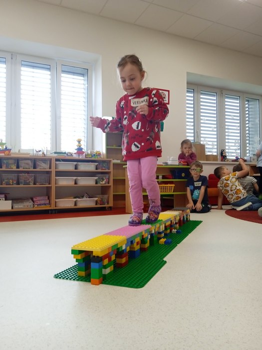V tomto týdnu jsme se dětem snažili přiblížit různé druhy povolání, povídali jsme si čím jsou rodiče a co ke své práci potřebují. Kladli jsme dětem otevřené otázky, proč musíme pracovat, co by se stalo kdyby někdo nedorazil do práce.... Pomocí pohádky "Jak krtek ke kalhotkám přišel" jsme si přiblížili povolání švadleny. Vyzkoušeli jsme si výtvarnou techniku batikování a vyrobili si kalhotky pro krtečka. Rozvíjeli jsme tak jemnou motoriku, představivost a zručnost. Ztvárnili jsme pomocí pohybu zvířátka, která krtkovi pomáhala. Součástí tohoto tematického bloku byl projektový den "stavitel mostů". Děti pomocí příběhu o Karlově mostě si přiblížily stavbu a historii, jak tento most vznikl, kdo jej nechal zhotovit a co vše na něm najdeme. Pomocí kostek z LEGA a předmatematických představ se první děti snažily postavit most samostatně a následně stavěly pilíře dle předlohy. Děti si tak postavily most, po kterém se dá doopravdy chodit. Zahráli jsme si na zahradníky a největším zážitkem bylo v závěru týdne hra na kuchaře a pečení pizzy. Uvolňovali jsme ramenní kloub pomocí grafomotorického cviku na velký formát (míchání v hrnci), vyrobili jsme si kuchařskou čepici (správný úchop nůžek a nácvik stříhání po linii), trénovali jsme posloupnost v řadě a předmatematické představy. Odměnou bylo samotné pečení pizzy, na které si děti s chutí pochutnaly.