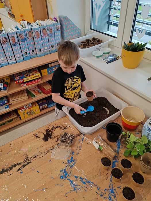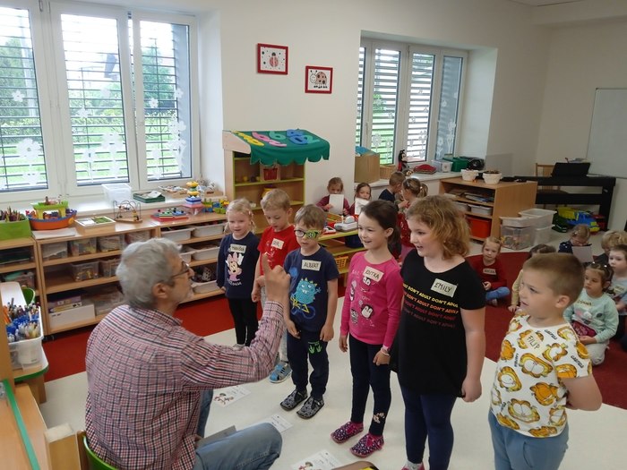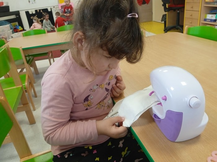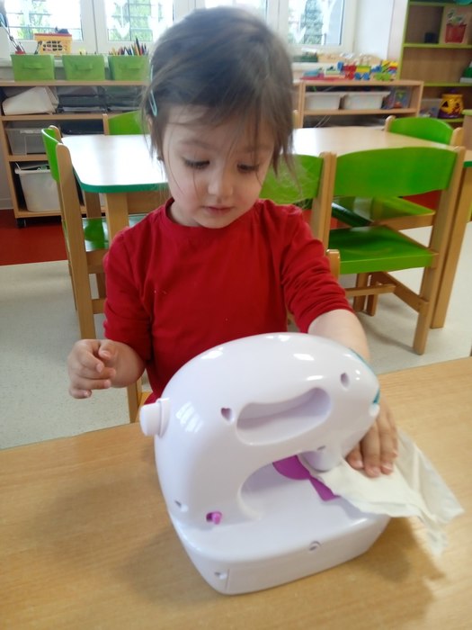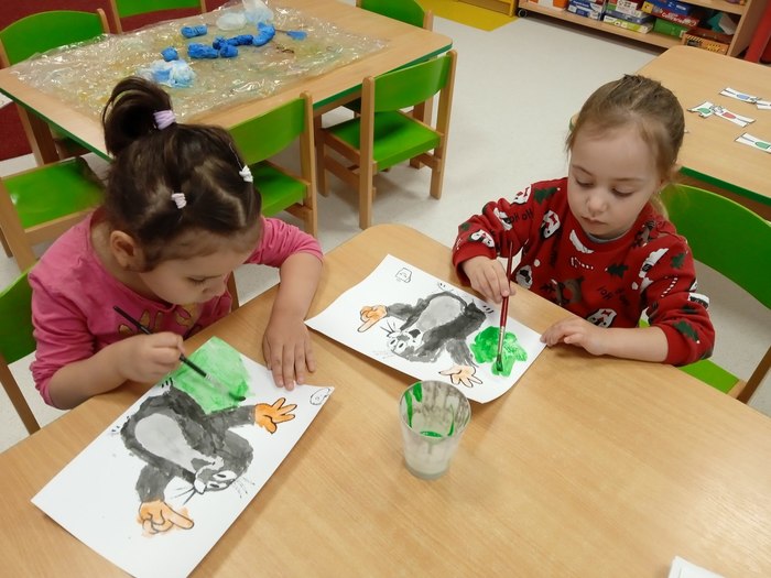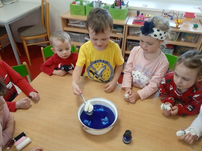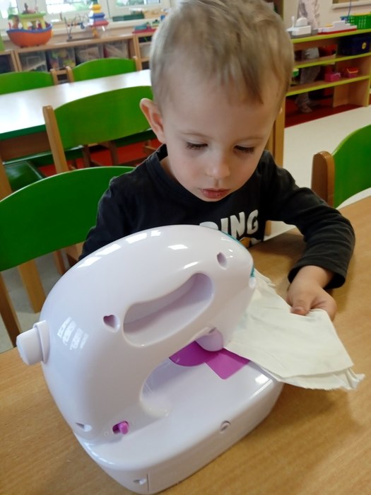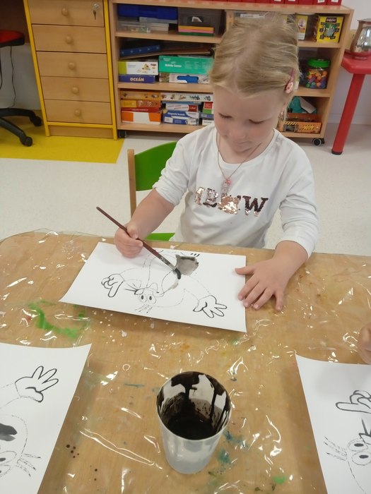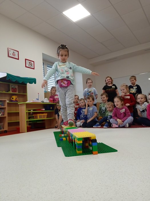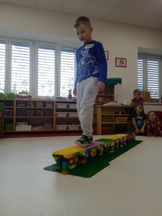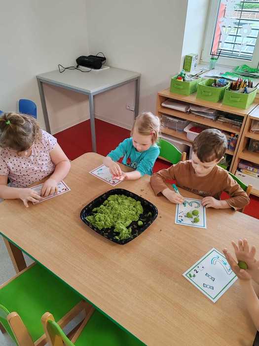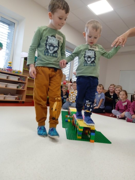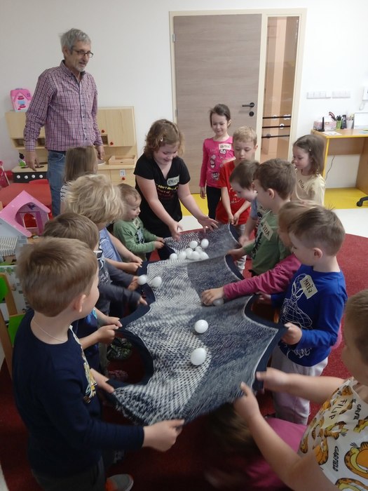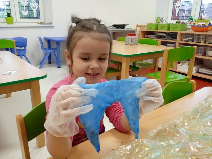 V tomto týdnu jsme se dětem snažili přiblížit různé druhy povolání, povídali jsme si čím jsou rodiče a co ke své práci potřebují. Kladli jsme dětem otevřené otázky, proč musíme pracovat, co by se stalo kdyby někdo nedorazil do práce.... Pomocí pohádky "Jak krtek ke kalhotkám přišel" jsme si přiblížili povolání švadleny. Vyzkoušeli jsme si výtvarnou techniku batikování a vyrobili si kalhotky pro krtečka. Rozvíjeli jsme tak jemnou motoriku, představivost a zručnost. Ztvárnili jsme pomocí pohybu zvířátka, která krtkovi pomáhala. Součástí tohoto tematického bloku byl projektový den "stavitel mostů". Děti pomocí příběhu o Karlově mostě si přiblížily stavbu a historii, jak tento most vznikl, kdo jej nechal zhotovit a co vše na něm najdeme. Pomocí kostek z LEGA a předmatematických představ se první děti snažily postavit most samostatně a následně stavěly pilíře dle předlohy. Děti si tak postavily most, po kterém se dá doopravdy chodit. Zahráli jsme si na zahradníky a největším zážitkem bylo v závěru týdne hra na kuchaře a pečení pizzy. Uvolňovali jsme ramenní kloub pomocí grafomotorického cviku na velký formát (míchání v hrnci), vyrobili jsme si kuchařskou čepici (správný úchop nůžek a nácvik stříhání po linii), trénovali jsme posloupnost v řadě a předmatematické představy. Odměnou bylo samotné pečení pizzy, na které si děti s chutí pochutnaly.