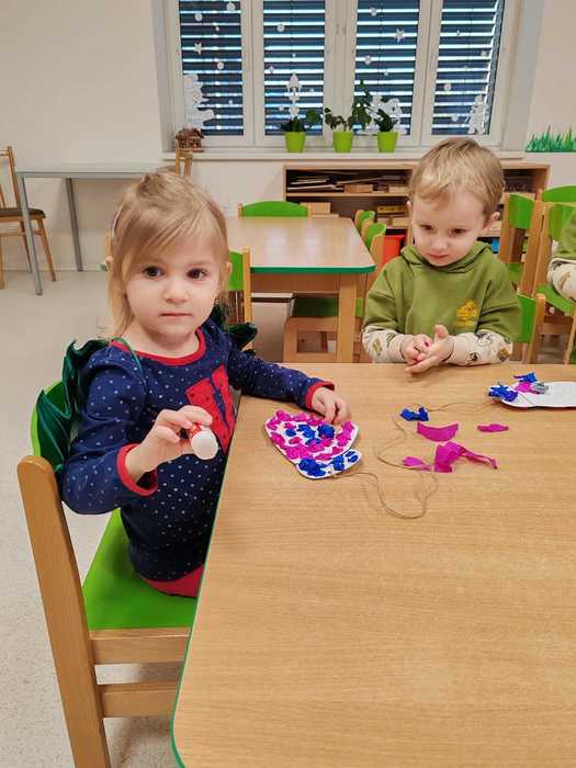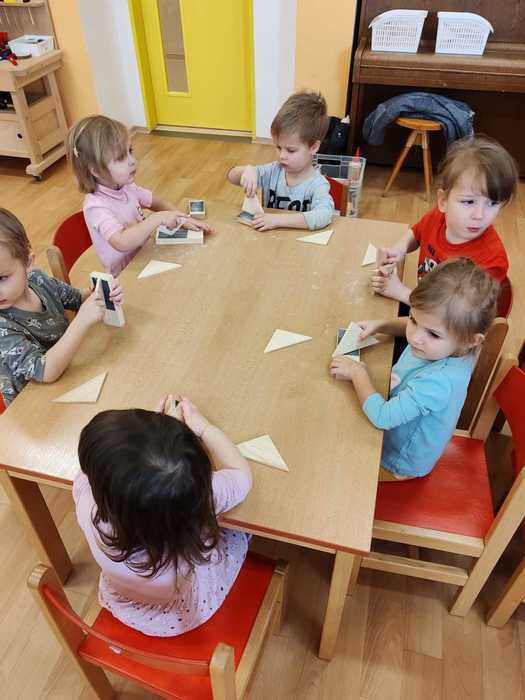 Kromě toho jsme procvičovali grafomotoriku, například kreslením čepic a rukavic. A v pátek nás čekala speciální aktivita – tvoření ze dřeva v rámci projektu. Děti si vyzkoušely práci s přírodními materiály a vytvořily krásné výrobky, které si odnesly domů.