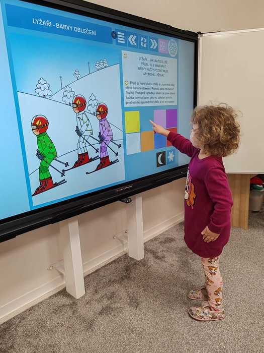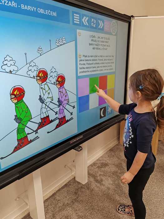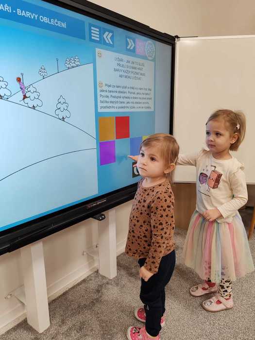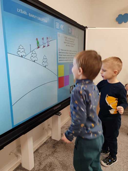 Během týdne jsme se zimnímu oblečení věnovali i při různých aktivitách. Při výtvarné činnosti si děti vyráběly barevné čepice a skládaly obrázky se zimní tématikou. Na interaktivní tabuli pracovaly s obrázky zimního oblečení a plnily různé zábavné úkoly. Nezapomněli jsme ani na pohyb – vydali jsme se na procházku po okolí školky a pozorovali jsme, jak jsou lidé oblečeni v chladném počasí.