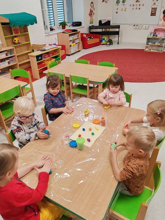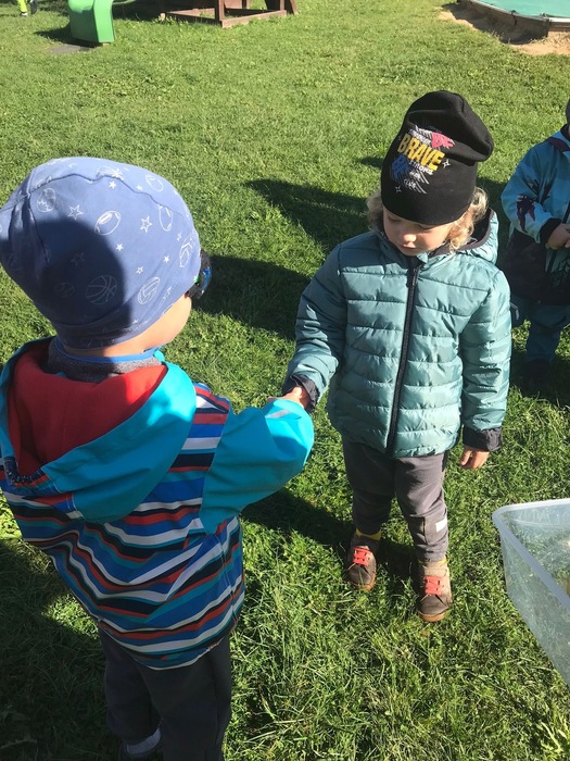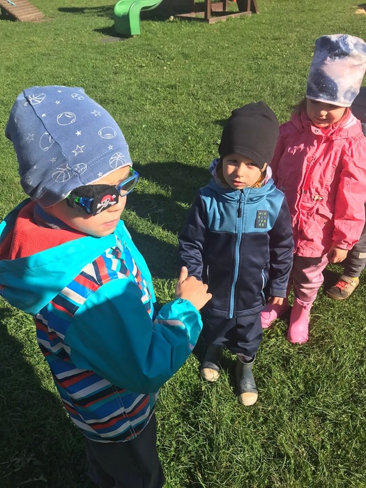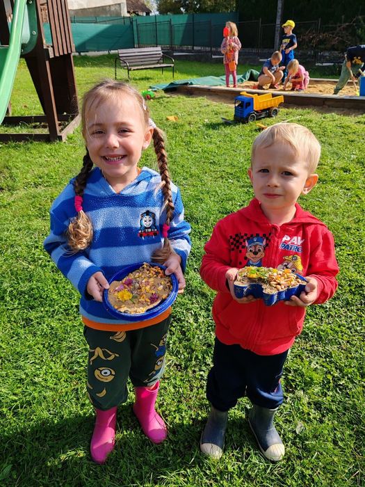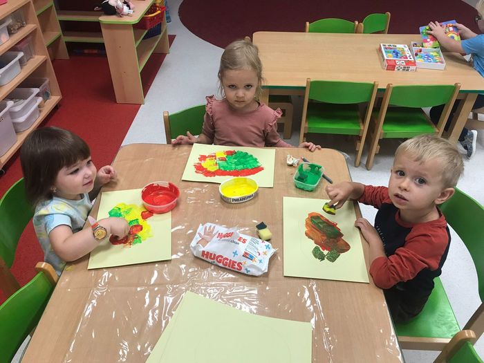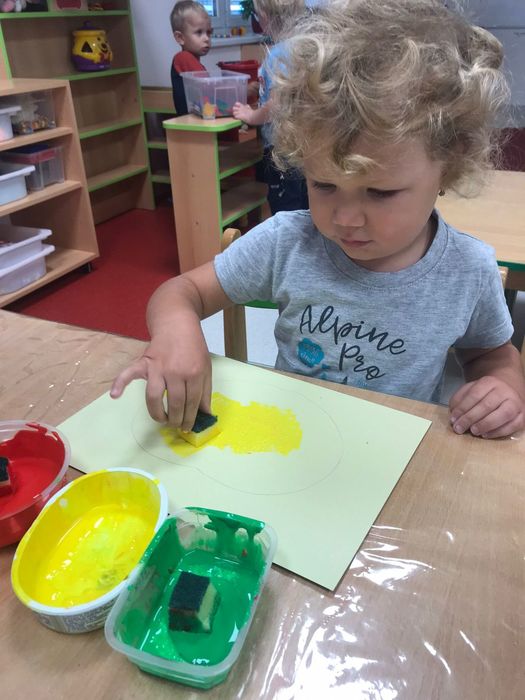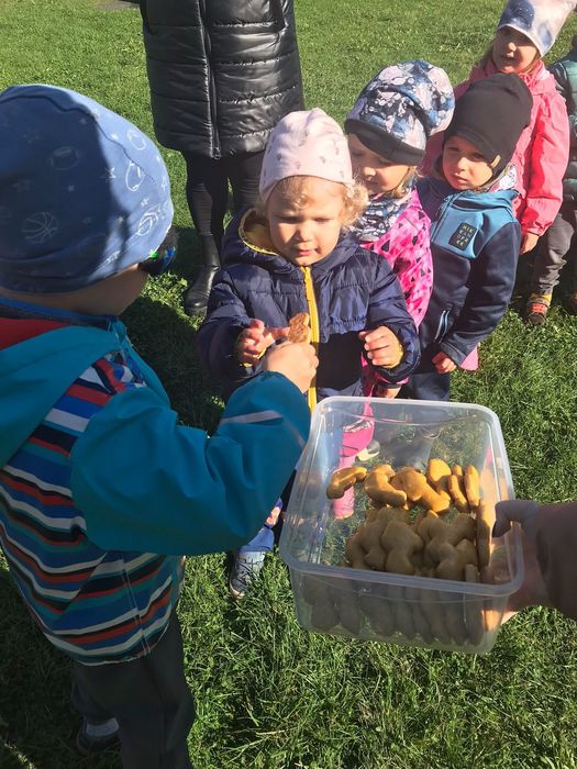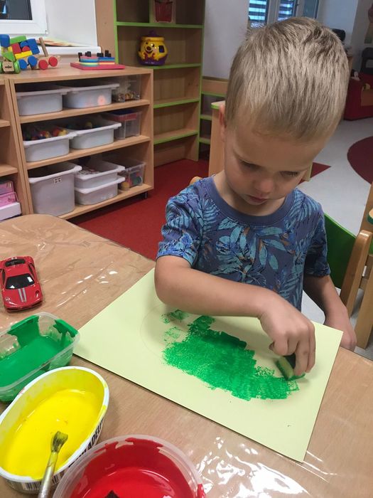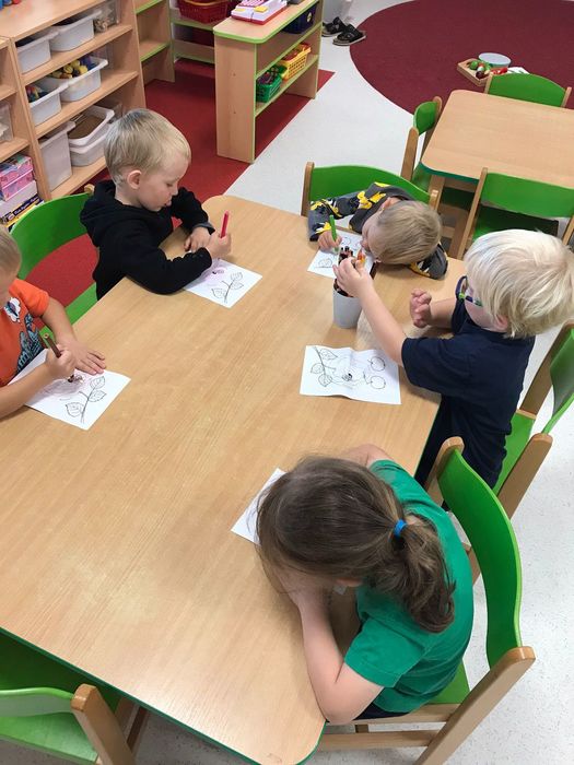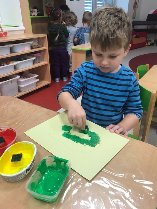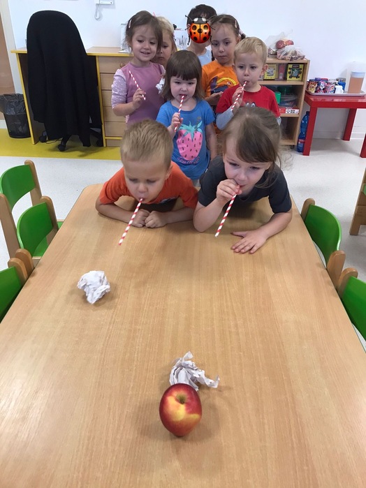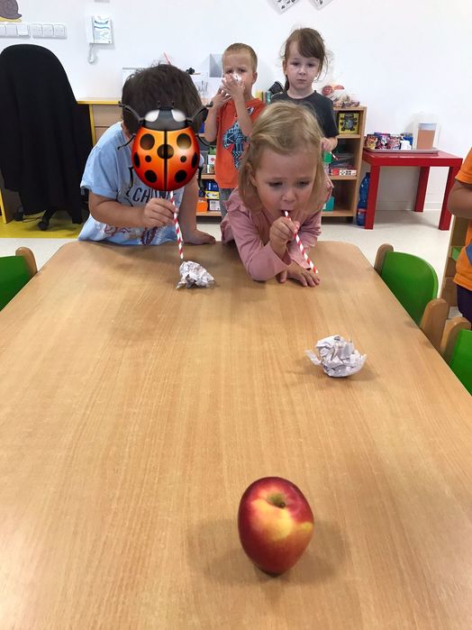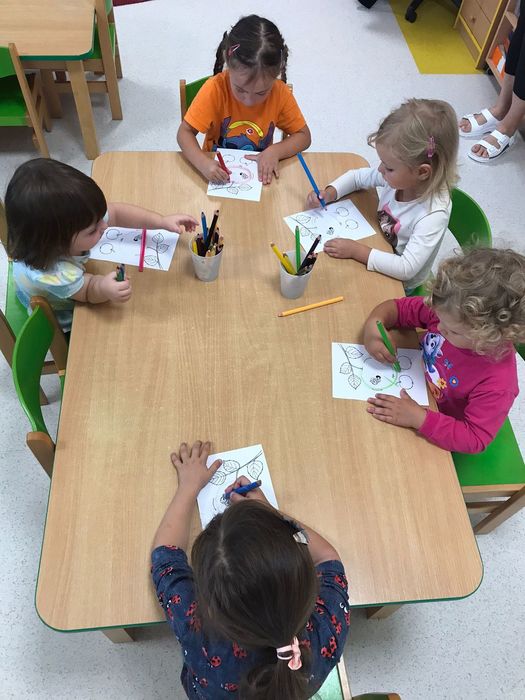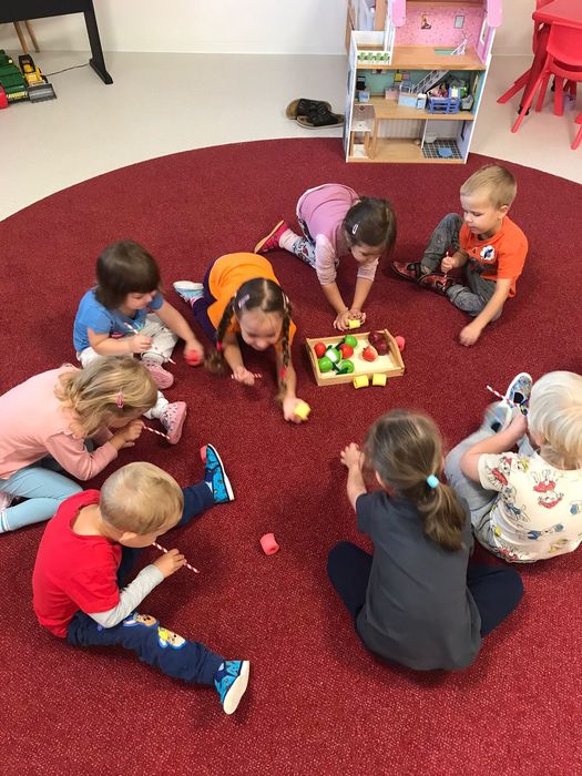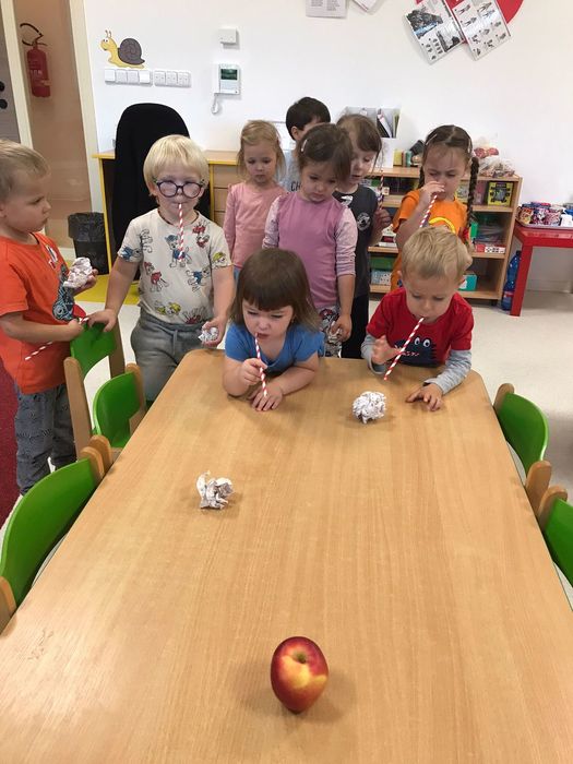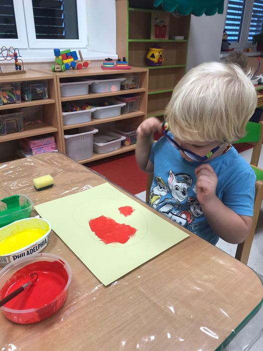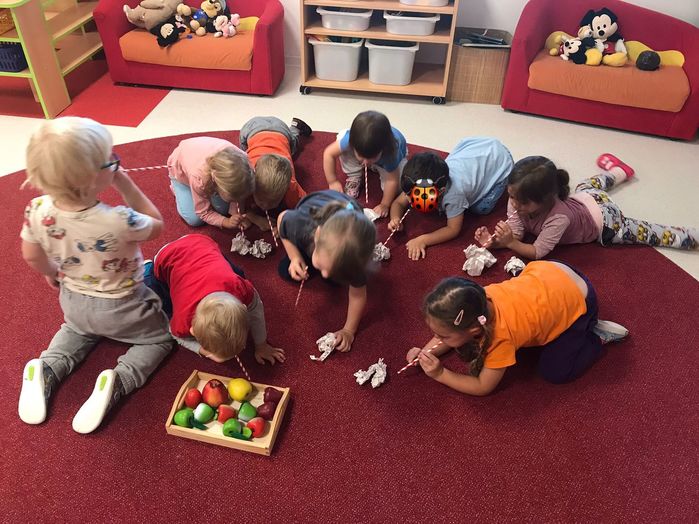 Věnovali jsme se ovoci, hlavně jablíčkům a hruškám. Seznámili jsme se s různými dětskými písničkami, jako například “Pod naším okýnkem”, kdy jsme si zahráli do rytmu na Orfovy nástroje (bubínek, dřívka, tamburína..), naučili jsme se básně s pohybem “Jablíčko”, “Podzim”. Vyráběli jsme jablíčka a stromy, které si odneseme domů. Modelovali jsme ovoce z plastelíny abychom si procvičili jemnou motoriku, ochutnávali jsme ovoce a hádali, co vlastně jíme. Při vycházkách obcí jsme pozorovali změny v přírodě, počasí a zvířata.