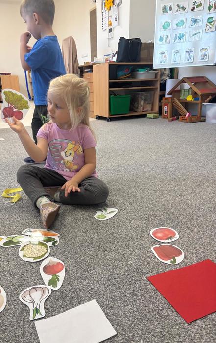 Tento týden jsme zavítali do beruščiny zahrádky objevovat různé druhy zeleniny. Celý týden byl provázen pohádkou O veliké řepě, kterou jsme si také zahráli a velmi nás to bavilo. Pracovali jsme také ve skupinkách, kde jsme zeleninu třídili podle barev, skládali zeleninové puzzle a třídili velké a malé brambory. Stihli jsme si také vyrobit broučky na páteční broučkiádu, na kterou se všichni velmi těšíme!