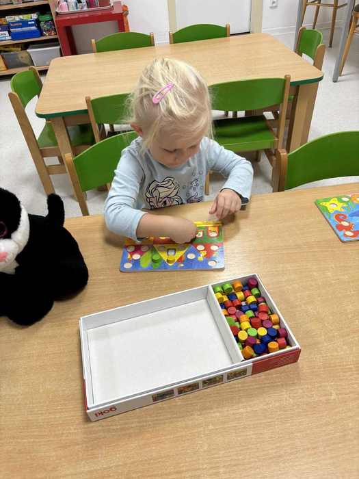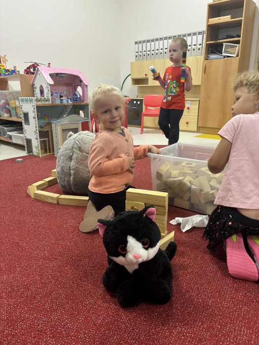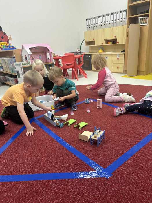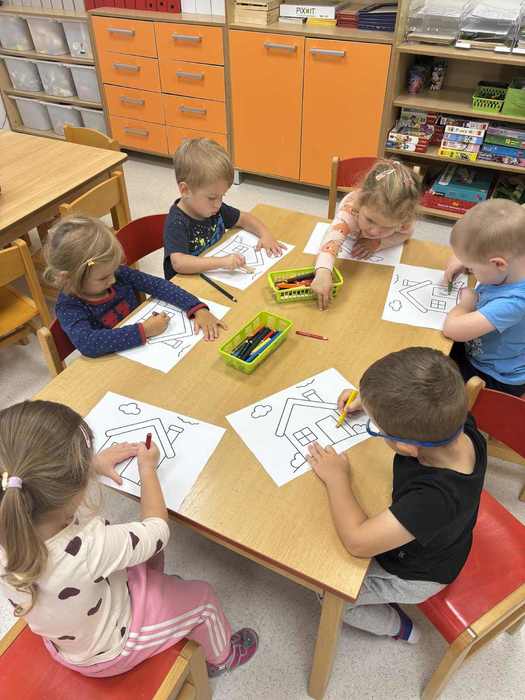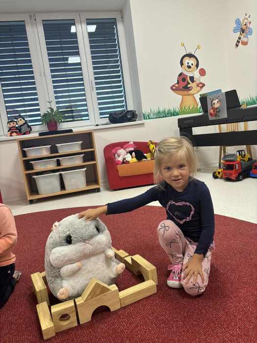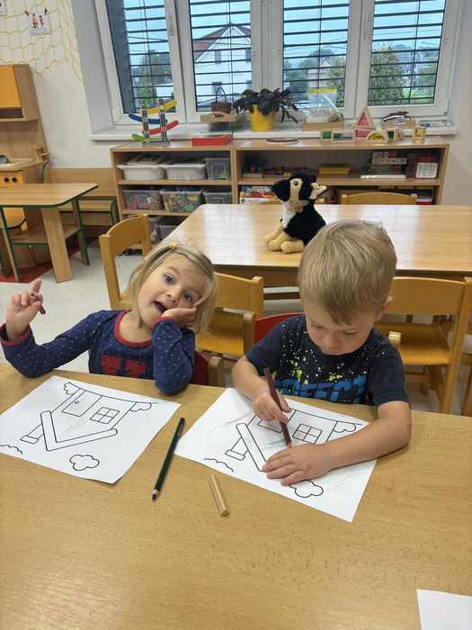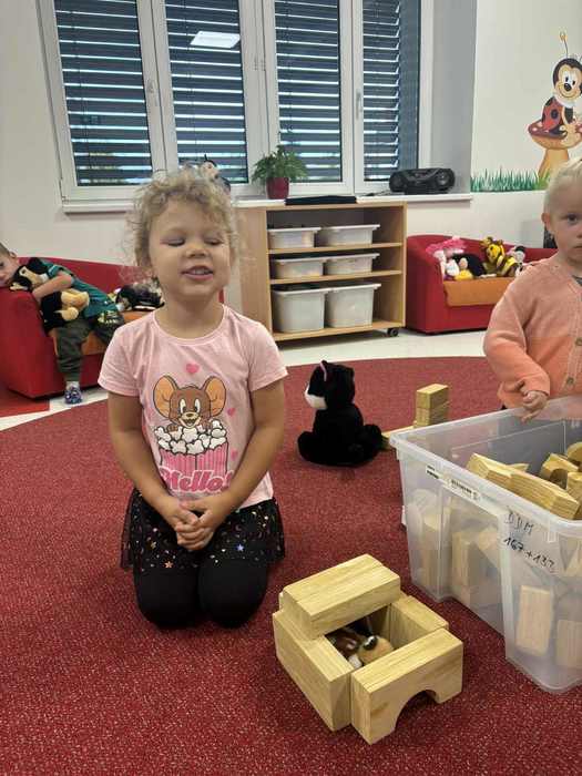 Tento týden jsme si s dětmi povídali na téma „Tam, kde bydlí beruška“. Společně jsme stavěli domečky pro plyšáky a děti si přinesly i fotografie svých blízkých, se kterými doma bydlí. Při popisování fotografií rozvíjely své vyjadřovací schopnosti a učily se sdílet zážitky s ostatními. Celý týden se nesl v duchu barev – procvičovali jsme jejich poznávání i správné pojmenování. Děti zároveň rozvíjely jemnou motoriku při vymalovávání vlastního domečku a nechyběly ani pohybové aktivity, při kterých se učily radovat ze hry a spolupráce.