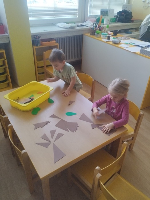 V týdnu od 18.-24.11.2024 se děti seznámily s tématem Kam zmizelo listí....při různých aktivitách se děti dozvídaly informace o stromech - jejich členění tvarech-velikostí. Skupinová práce byly zaměřeny na předmatematické počty a zrakovou percepci...Děti se seznámily s písní Lupínek a díky edukačním videím si děti osvojily poznatky o stromech. Tvořily skupinovou práci Černý les a zahráli si na malíře a vystínovaly stromy. V tomto týdnu děti navštívilo také divadlo Letadlo s pohádkou průzkumníci v Austrálii.