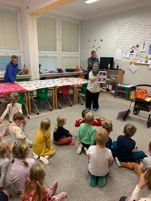 V úterý proběhla v naší MŠ beseda na téma Život má mnoho podob. Rozhovor o tom, že nejsme všichni stejní. Vyprávění z vlastního života paní s postižením, obohacené fotografiemi z dětství a současnosti. Děti si na závěr namalovaly sádrový odlitek, který si vybraly dle vlastního výběru.