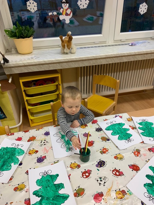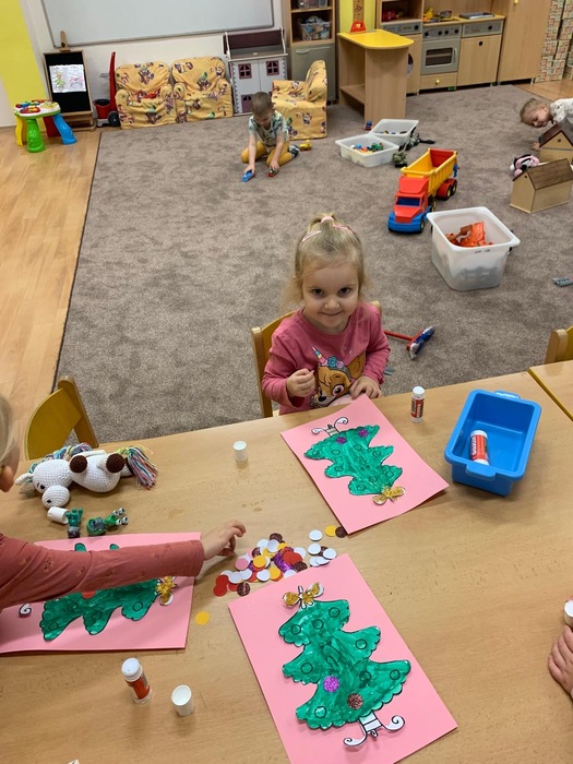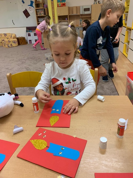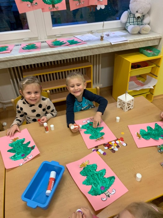 Vyrobily si přáníčko, malovaly strom a nalepovaly drobné papírové ozdoby.