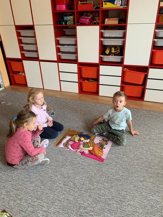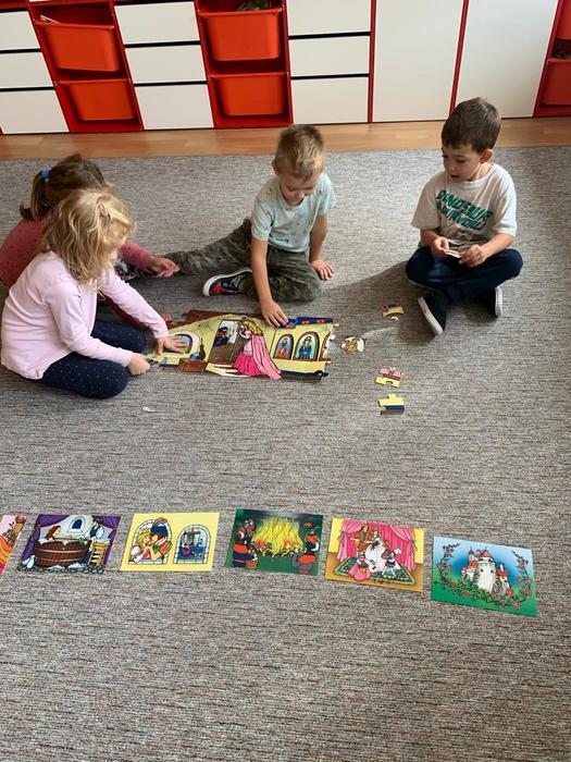 Poslechly si a pak vyprávěly pohádku O šípkové Růžence, skládaly puzzle a zahrály si domino k pohádce.