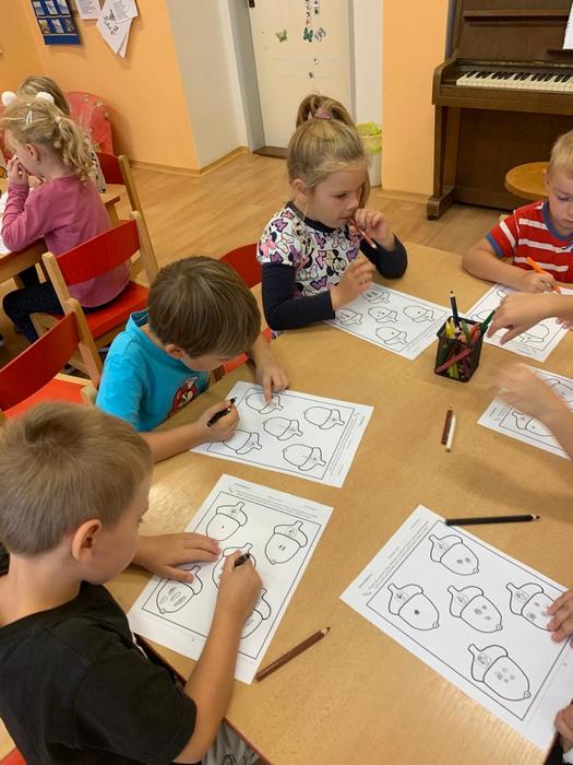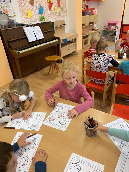 Vypracovávaly pracovní listy: správný počet puntíků na muchomůrku, košík s plody- vodorovné a svislé čáry.