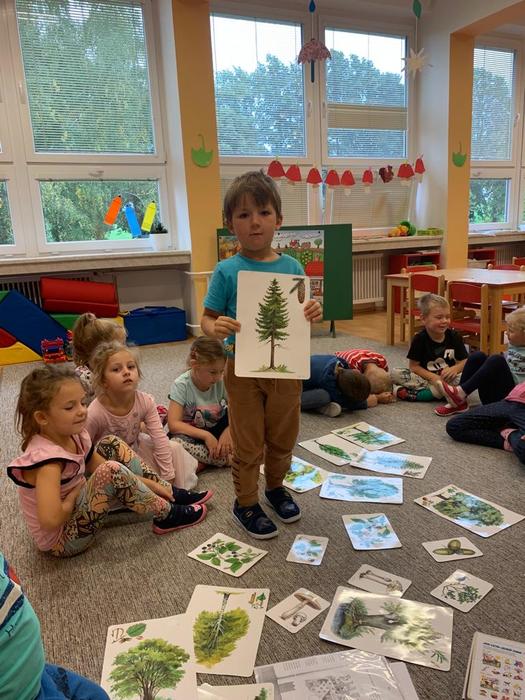 V týdnu od 9.10. -13.10. jsme si s dětmi povídali o podzimu v lese. Děti se seznamovaly s plody lesa, ze stromy listnatými a jehličnatými a jejich názvy, s pojmy krmelec, hajný, posed....