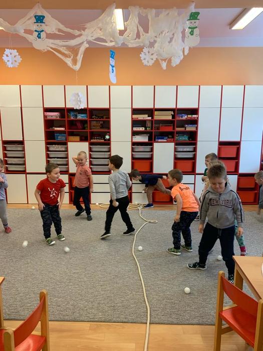 Při pobytu venku mohly pozorovat co se stane se sněhem, když se zahřeje v dlaních a osvojily si poznatky o nebezpečí, které hrozí na zledovatělém chodníku. Na školním hřišti se proběhly, zahrály si pohybovou hru Na mrazíky, stavěly sněhuláka, dělaly stopy ve sněhu, koulovaly se.