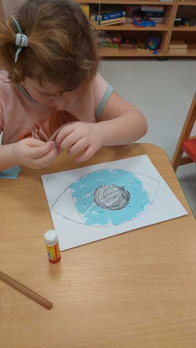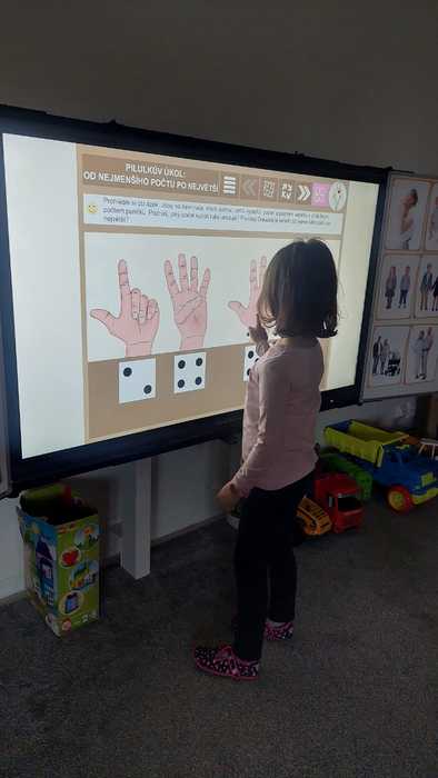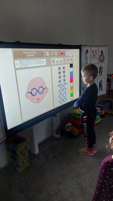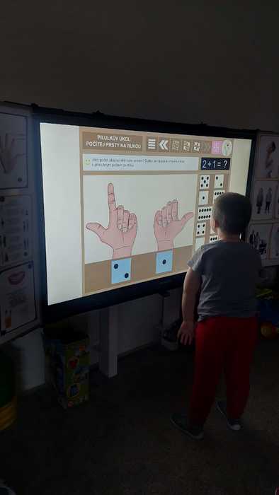 Téma lidské tělo, bylo pro děti velice zajímavé. Povídali jsme si jaké máme části těla, popisovali jsme části obličeje, názvy prstů. Povídali jsme si o tom, jaké má jazyk chutě. Povídali jsme si o zubech, o tom, jak se o ně staráme. Zkoumali jsme přes lupu růst chlupů na rukou. Tvořili jsme pusu se zuby a oči s řasy, kdy jsme stříhali , lepili, trhali papír a dokreslovali výkres. Pracovali jsme ve skupinkách podle náročnosti, kdy jsme si procvičovali hlavně předmatematické schopnosti, také postřeh a paměť. Povídali jsme si o posloupnosti, jak se vyvíjí člověk. Pracovali jsme na interaktivní tabuli. V úterý nás navštívil veselý klaun, který si pro nás připravil edukační program s tématem doprava. Celý týden jsme zakončili s žabákem Ferdou a jeho emocemi, kdy jsme si četli příběh s ponaučením o radosti.
