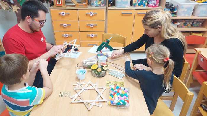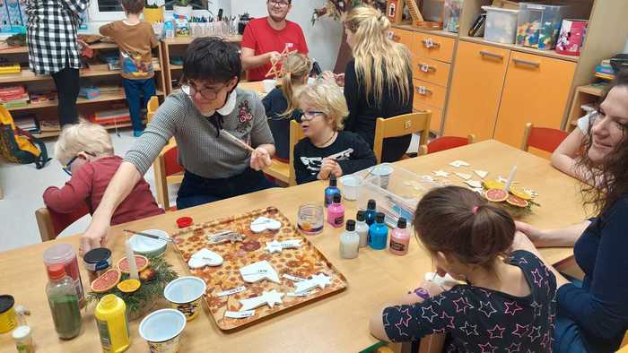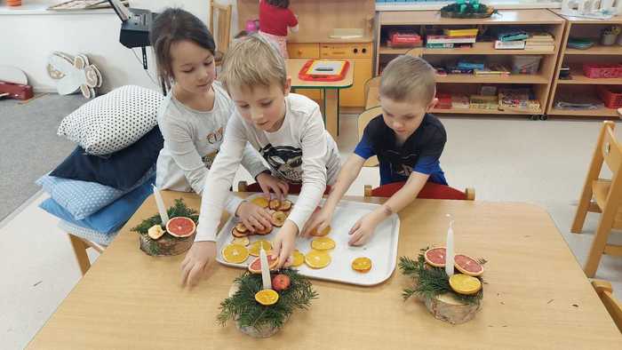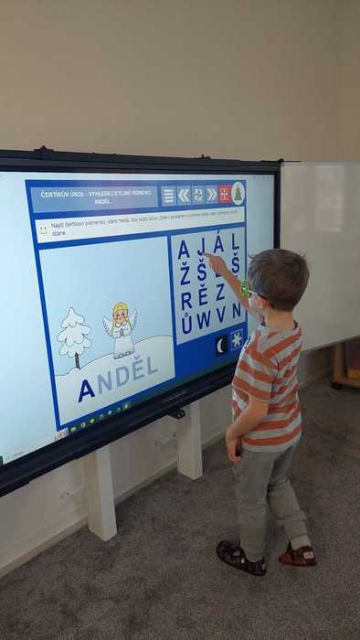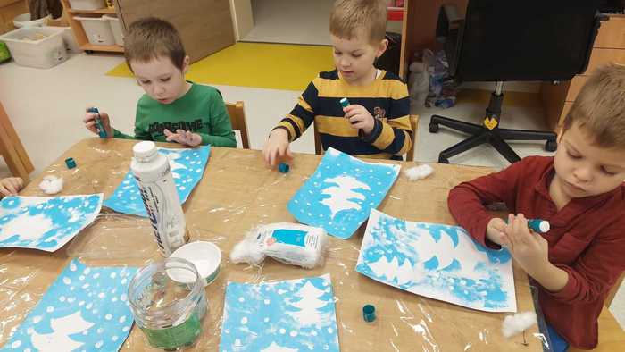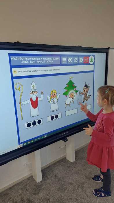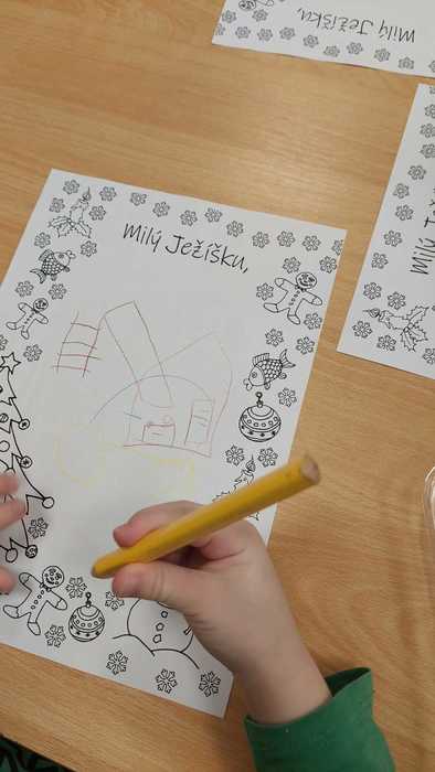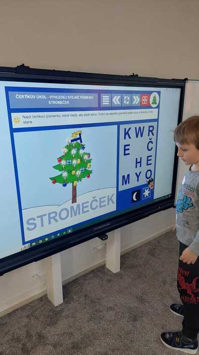 Zimní čas je v plném proudu. Za dětmi přišel do školky Mikuláš se svou družinou, přijelo divadlo s pohádkou, děti malovaly do sněhu, měly čertí dopoledne, vyráběly čertíky, tvořily, stříhaly, lepily, aj.. V dalším týdnu děti psaly dopis Ježíškovi, který daly do velké obálky za okno a čekaly, jestli ho ho Ježíšek odnese. Zdobily stromeček, měly krásné VÁNOČNÍ DÍLNY s rodiči, na kterých si vyrobily vánoční ozdoby. Pracovaly ve skupinkách a zaměřovaly se hlavně na geometrické tvary a jemnou motoriku. Procvičovali jsme také předčtenářské a předmatematické dovednosti. Vyráběli jsme ozdoby ze samo-tvrdnoucí hmoty a vánoční přání pro rodiče. Barvami jsme malovali zimní krajinu. Pracovali jsme s interaktivní tabulí v programu IŠKOLIČKA s měsícem prosinec. Zpívali jsme vánoční koledy. Stihli jsme toho moc a v příštím týdnu, už se moc těšíme na VÁNOČNÍ BESÍDKU a nadílku od Ježíška.