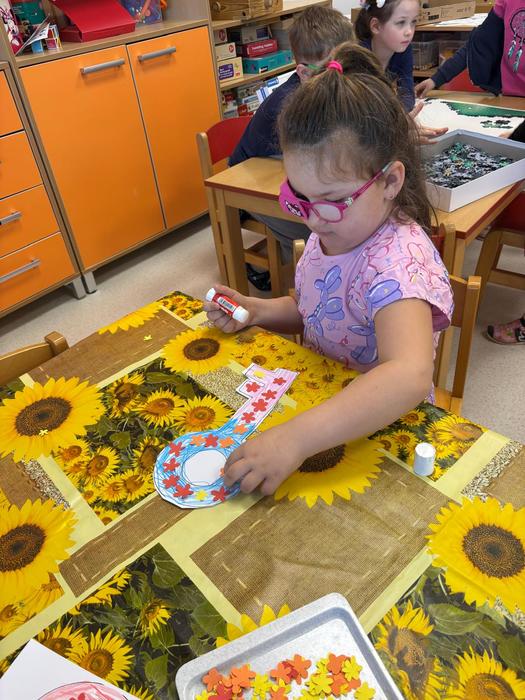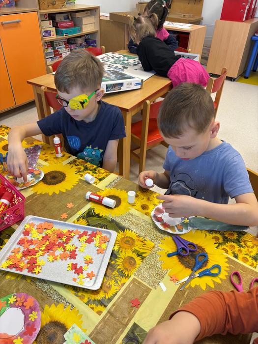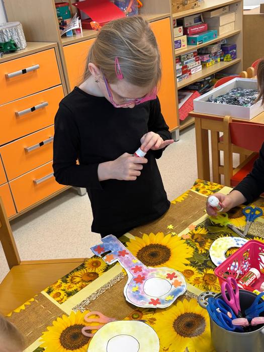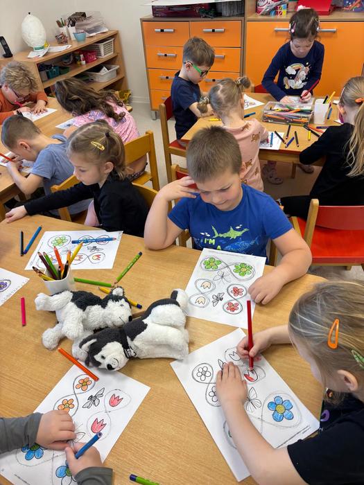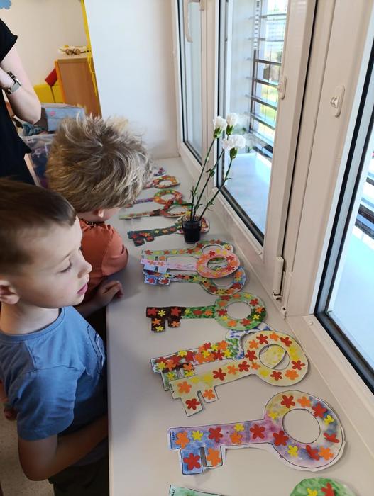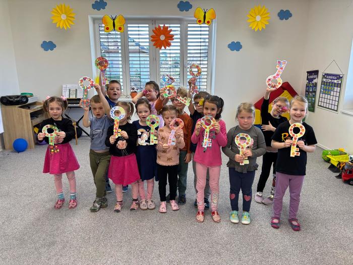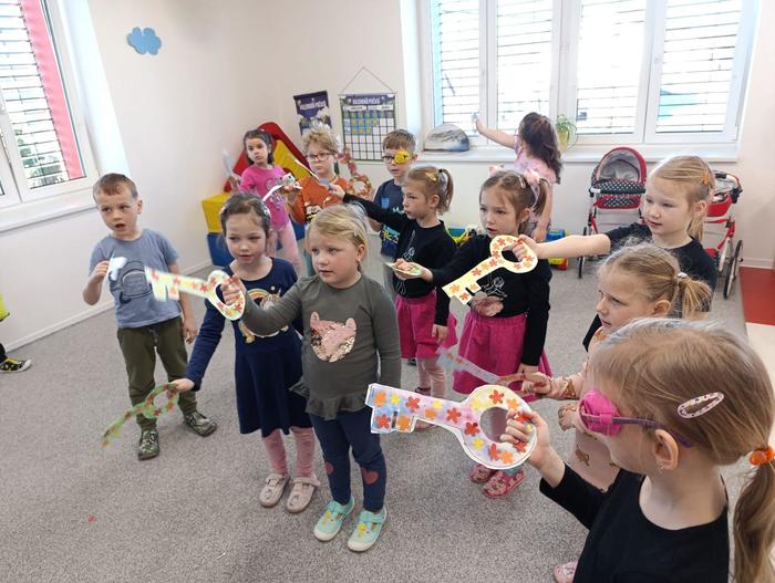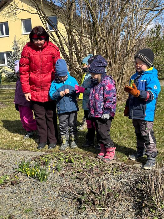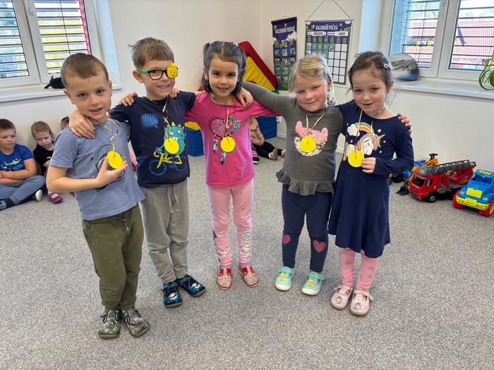 Povídali jsme si také o počasí na jaře a jarních květinách, které jsme sledovali i v přírodě v okolí školky. Vyrobili jsme si klíč k odemčení jara, které jsme poté společně díky zaklínadlu odemkli. Přišla také odměna pro děti v podobě medailí, které získaly za sbírání včeliček za celou zimu.