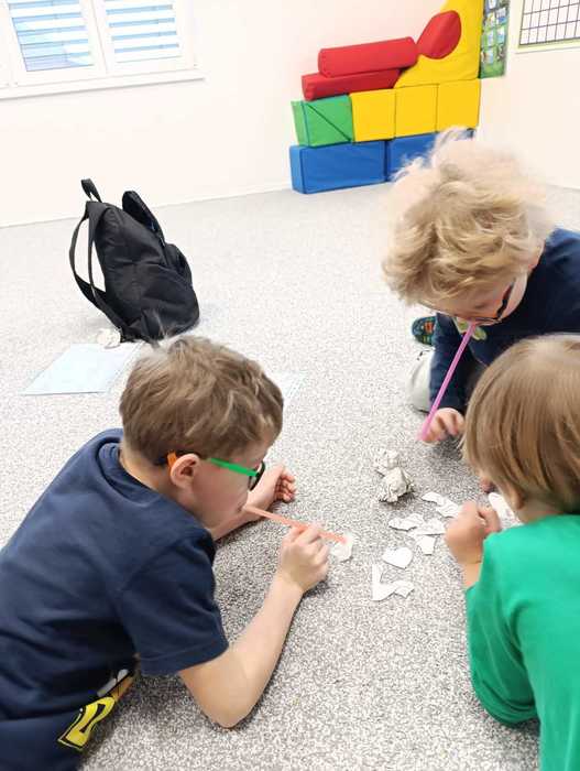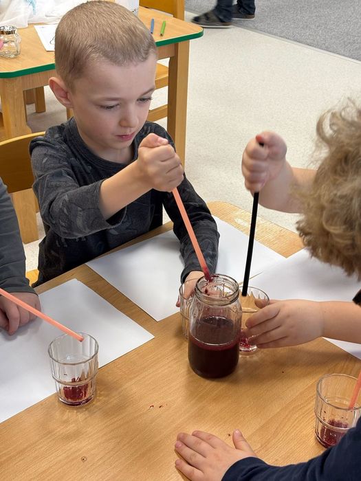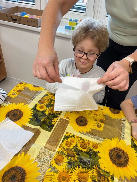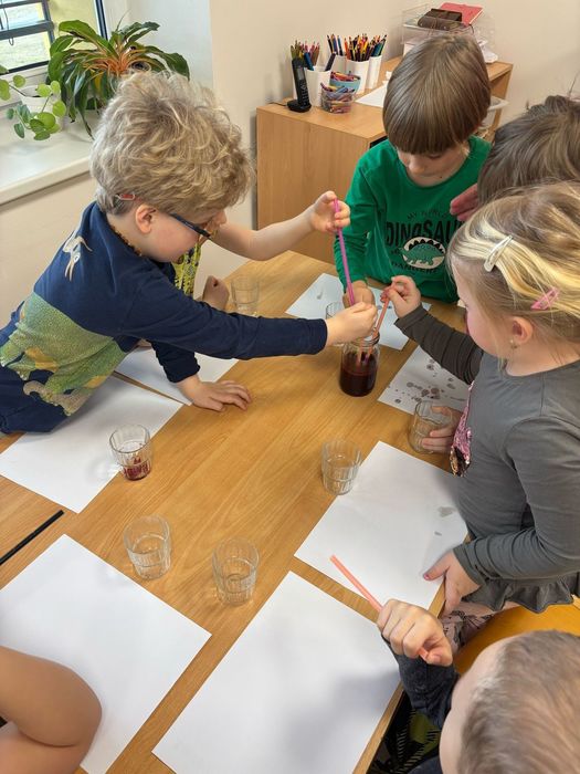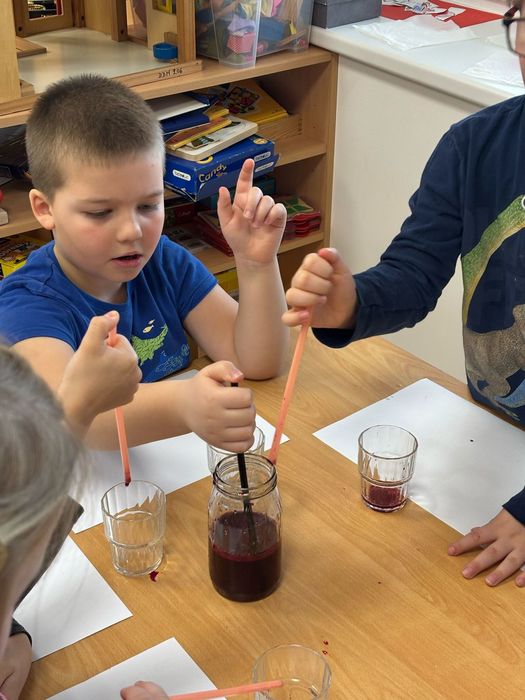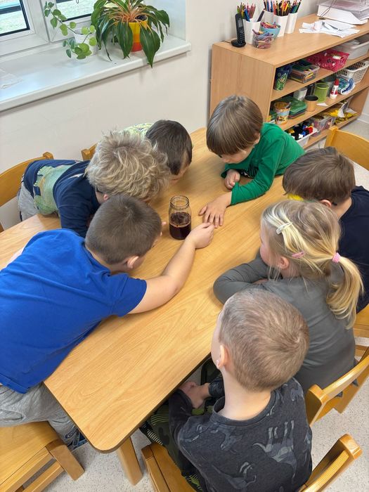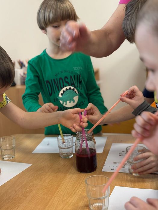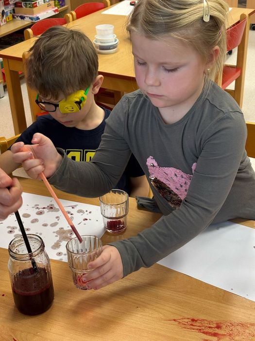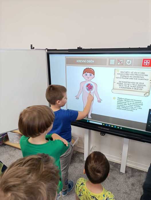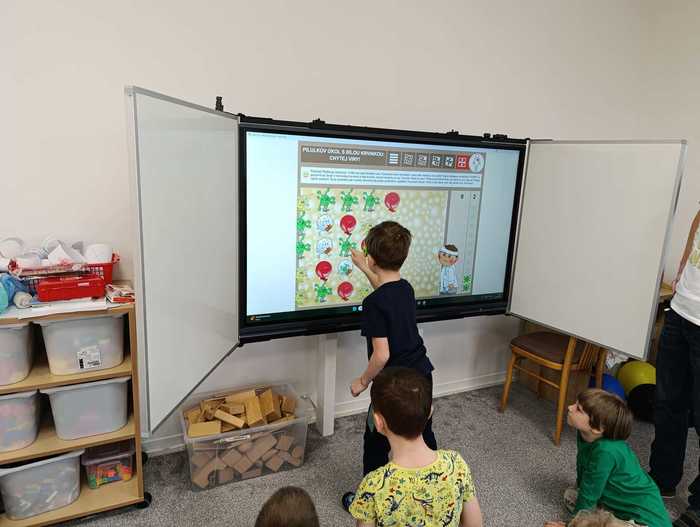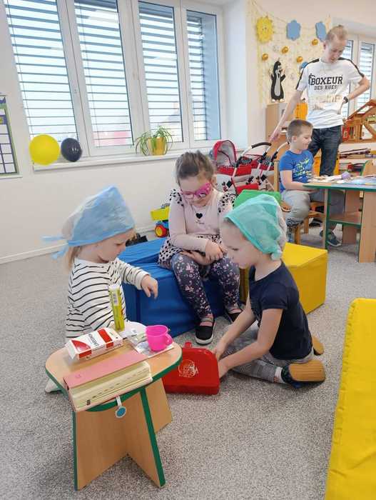Pokusem s rozprašovačem naplněným obarvenou vodou a třpytkami si uvědomili, jak se bacily rozletí do okolí, když si nepřikryjeme ústa a nos. Také jsme prováděli pokusy a hráli si na laboratoř ( nabírali tekutinu slankou - jako pipetkou), plnili úkoly na interaktivní tabuli a hrou Na lékaře si rozvíjeli a upevňovali znalosti ohledně lidského těla, nemocí, zdravé stravy, otužování a správných hygienických návyků.