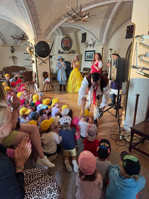 Tento týden byl plný nezapomenutelných zážitků. Tím prvním se stal výlet do Hradce nad Moravicí s hranou pohádkou v zámku a tím druhým - procházka kolem hráze na horní Hati, návštěva stánku se zmrzlinou a prohlídkou tabla předškoláků ve výloze květinářství. Všechno bylo super!