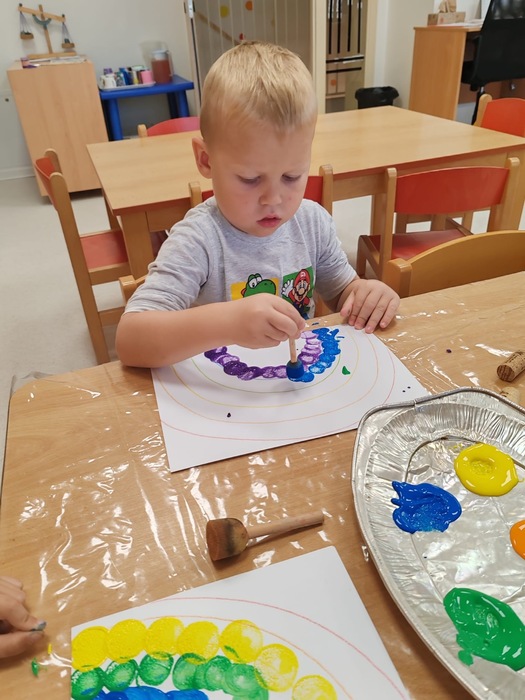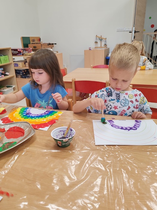 Zpívali jsme známé dětské písničky za doprovodu klavíru, naučili jsme se novou písničku Jaro, léto, podzim, zima. Také jsme malovali duhu přátelství.