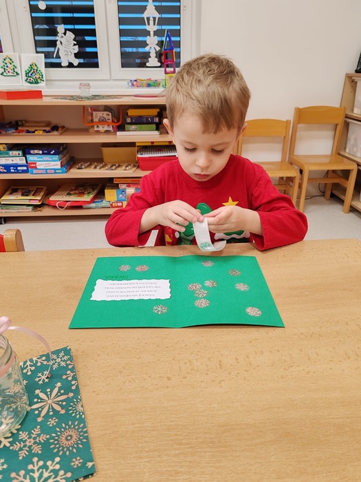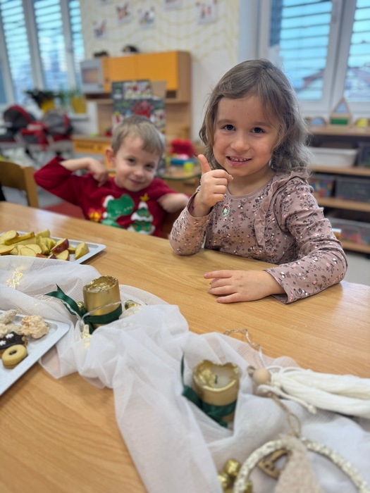 Velkým zážitkem byla vánoční besídka ve stylu Ledového království, která přinesla do školky pohádkovou atmosféru plnou básniček, písniček, tance a dětské radosti. Děti si vystoupení moc užily a odměnou jim byl potlesk a úsměvy všech přítomných. Poté následovaly vánoční dílny, ve kterých si každý mohl vyrobit krásné výrobky.