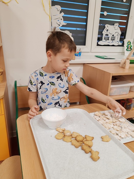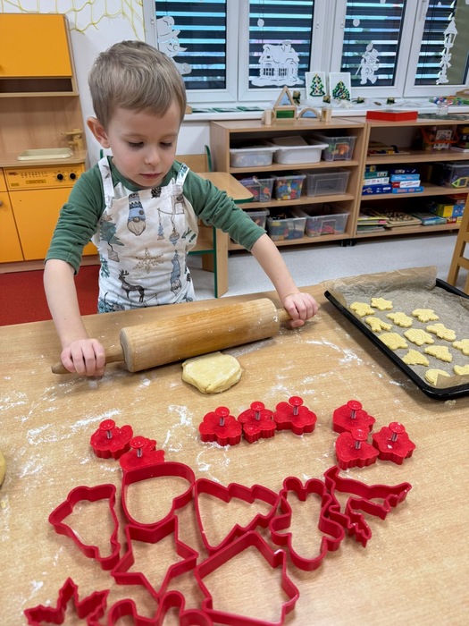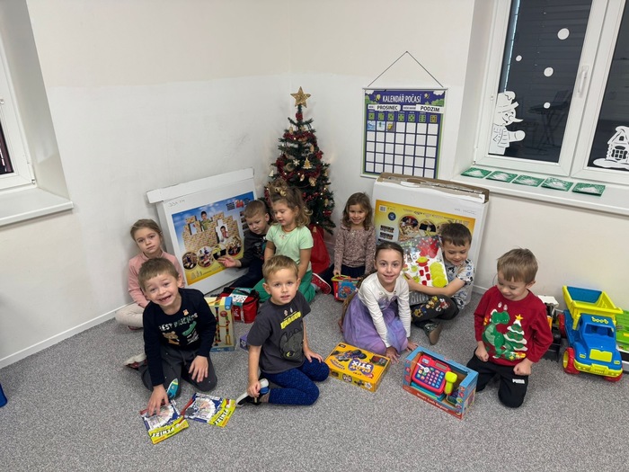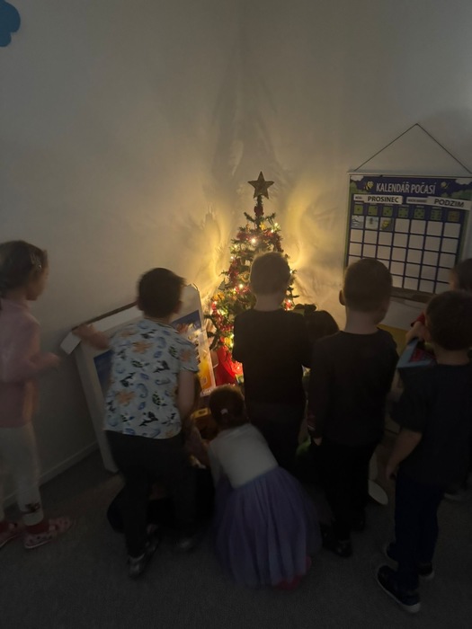 A pak přišel ten nejkouzelnější okamžik – zazvonil zvoneček a dorazil Ježíšek. Děti s nadšením zkoumaly dárečky a společně jsme si užívali sváteční chvíle. Nechybělo ani výborné domácí cukroví, které si děti přinesly z domova a o které se s radostí podělily s ostatními.